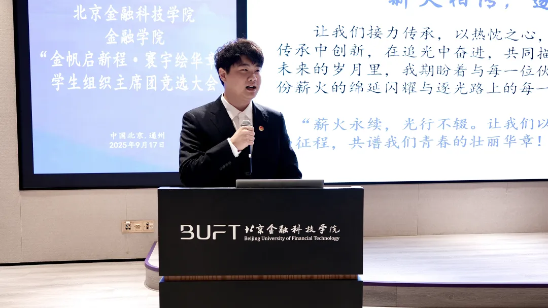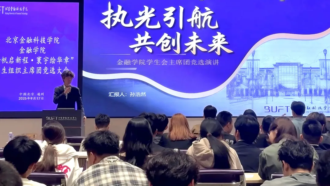 2025年9月17日,金融学院“金帆启新程·寰宇绘华章”学生组织干部竞选大会在M205隆重举行。本次大会旨在选拔优秀学生骨干,为学院学生组织注入新鲜活力,推动学生工作高质量发展。 领导老师莅临,助力竞选顺利开展 金融学院团总支书记韩玉、学生会指导老师李志烨、新闻中心指导老师韩乐及辅导员闫佳出席大会,为候选人提供指导,彰显学院对学生工作的重视与支持。 候选人竞演展风采,各显所长绘蓝图 按照竞选流程,候选人需进行5-8分钟脱稿演讲并配合PPT展示,按团总支、学生会、新闻中心顺序依次竞选。各位候选人凭借清晰思路、务实规划与饱满热情,展现出对学生工作的深刻理解与担当。 团总支候选人 深耕思想引领,凝聚青年力量 陈泽寰 演讲紧扣团总支核心职责,既有对思想引领活动的创新设计,也包含服务同学的具体举措。他的规划逻辑清晰、贴合实际,字里行间传递出“为同学办实事”的诚意,展现出踏实务实的工作态度与推动团总支发展的决心。 金姗珊 突破传统工作框架,从组织建设、活动创新、权益服务等多元角度切入。她提出的思路兼具创新性与可行性,为团总支工作开辟新视角,让在场师生看到组织发展的更多可能性,充分体现其开阔的视野与创新思维。 吴紫阳 聚焦思想引领与组织建设两大关键,深入分析工作现状与优化方向,提出强化思想引领实效性、完善组织运行机制的具体方案。演讲中始终保持饱满热情,传递出投身学生工作的坚定信念,展现出较强的统筹与执行能力。 学生会候选人 聚焦学生需求,务实服务校园 学生会作为服务同学的前沿阵地,始终致力于提升校园生活质量。五位候选人轮番分享: 戴浩宇 工作设想贴合日常需求,兼顾实用与可操作,务实态度获师生认可。他充分考虑方案落地细节,兼顾实用性与可操作性,以务实态度诠释学生会“服务同学”的核心宗旨,获得师生认可。 孙浩然 演讲走心,对学生会工作理解透彻,活动策划与服务优化思路清晰。从活动策划、服务优化、团队协作三方面展开分享,展现出对学生会工作的深度理解与丰富经验,满满一大屏的工作成果震撼全场。 徐清越 围绕“活动创新”与“服务升级”提出新鲜构想,这些思路符合学生需求与校园发展趋势,以敢想敢做的热情为学生会工作注入活力,让大家对未来校园生活充满期待。 杨岚媚 规划以“同学为中心”,关注不同年级学生差异化需求——为新生提供校园适应指南,为毕业生对接就业资源,同时细致考虑活动时间、场地对学生的影响。这份细致与热忱,完美契合学生会“以生为本”的服务初心。 周春融 全身心投入学院宣传工作,计划推出涵盖文化、体育、学术的“主题月活动”,及时反馈需求。全面且多元的规划,展现出她统筹协调与服务校园的综合能力。 新闻中心候选人 传递学院声音,讲好金融故事 新闻中心作为学院信息传递、校园记录的重要平台,三位候选人分享创新规划: 王雨欣 提出“多元化宣传矩阵”构想,除传统公众号推文外,计划推出校园Vlog、金融知识科普漫画、人物访谈等内容。既坚守“传递信息、记录校园”的核心职责,又开辟宣传新方向,展现出较强的创新意识与专业认知。 陈昊 围绕“贴近学生需求”设计规划,内容创作聚焦校园热点与学生感兴趣的金融资讯,传播方式兼顾校园社群与反馈调整机制。方案接地气、易落地,充分考虑学生喜好,为提升新闻宣传的吸引力与影响力提供新思路。 李昊宇 注重“温情记录”与“互动创新”,既计划报道学院重要事件,也关注校园暖心瞬间;同时尝试互动式推文、校园直播等新形式,打破单向传播模式,让新闻宣传更具温度与参与感,展现出对宣传工作的热爱与巧思。 音乐表演缓氛围,严谨统计定结果 候选人演讲结束后,工作人员收集统计选票,期间飘忽音乐社演唱《致爱 Your Song》,缓解现场紧张氛围。 经严谨统计,韩玉老师公布拟定竞选结果: 团总支副书记:陈泽寰、金姗珊 学生会主席团:戴浩宇、孙浩然、杨岚媚 新闻中心主任:陈昊、王雨欣 此次竞选大会圆满落幕。相信在新骨干带领下,金融学院学生组织将继续秉持服务宗旨,创新工作方法,为学院发展与学生成长贡献力量,书写学生工作崭新篇章!